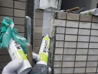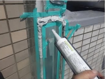 専用のボンド、コーキングで隙間からの雨漏りを徹底的に無くしていきます。